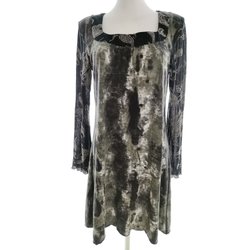 Dam Stickad Klänning 40 Grå Viskos 3/4 ärm Spetsbroderi Kort Rund urringning
