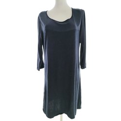 MARIE SIXTINE Dam Enkel Klänning 42 Marinblå Ull 3/4 ärm Knälängd Rund