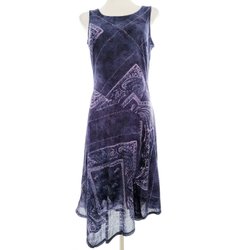 PLANET Dam Enkel Klänning 42 Bomull Ärmlös Glänsande Midi Rund urringning