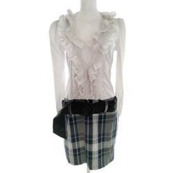 RINASCIMENTO Dam Pennklänning S Vit Bomull Lång ärm Volang Rutig Knälängd Rund