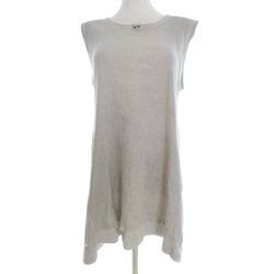 ITALY Dam Enkel Klänning 40 Beige Lin 100% Ärmlös Knälängd Off shoulder