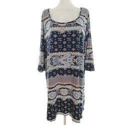 YAYA Dam Enkel Klänning XL Marinblå Viskos Lång ärm Knälängd Fyrkantig