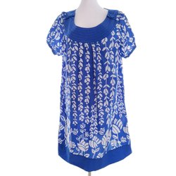 ESTELLE Dam Enkel Klänning 46 Blå Bomull 100% Kort ärm Midi Rund urringning