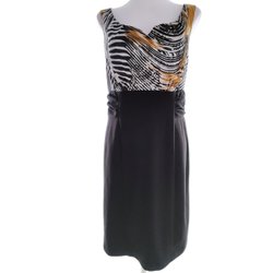 MONSOON Dam Elegant Klänning 44 Svart Kort ärm Midi Rund urringning