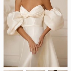 Vit jättesöt spetsklänning, storlek M