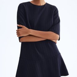 H&M, mörkblå kritstrecksrandig klänning, storlek M