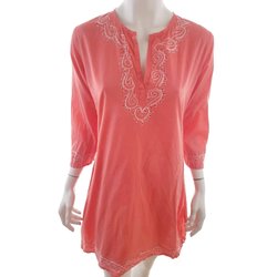 ESTELLE Dam Enkel Klänning 46 3/4 ärm Broderi Knälängd Rund urringning