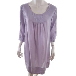 2 BIZ Dam Skjortklänning S 3/4 ärm Spetsbroderi Midi Delad rund hals