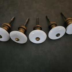 DÖRR/SKÅPSKNOPPAR, 5 st, porslin, mässing, 1900-talets andra hälft. Retro