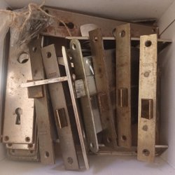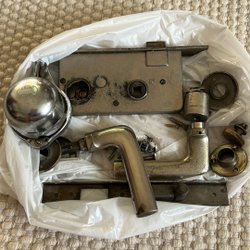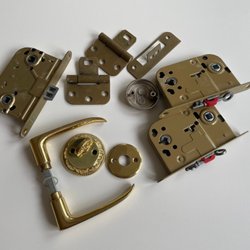 Låshus, dörrhandtag, beslag, gångjärn mm