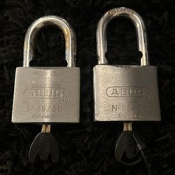 2 st ABUS 88/50 Plus hänglås med nyckel – ett rostigt