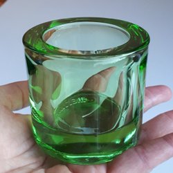 Oanvänd IITTALA MARIMEKKO Kivi Ljusstake. Heikki Orvola Glas Ljushållare Grön
