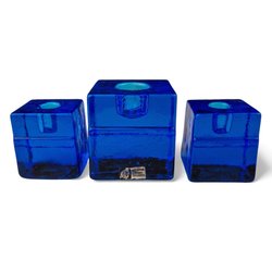 Lindshammar Cobalt Blue Glass Cube Candle Holders – Set of 3 – Chr. Sjorgren