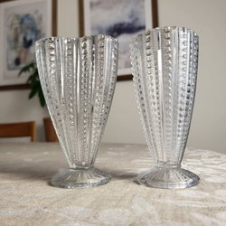 2 Vaser Alsterbro Pärlkant Pärlband Pressglas Blomvas
