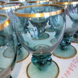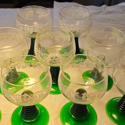 9 stycken Luminarc roemer grön fot 60 talet fin skick