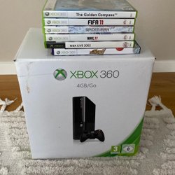 Xbox 360 4 GB – Komplett paket med 2 handkontroller, 6 spel & originalkartong