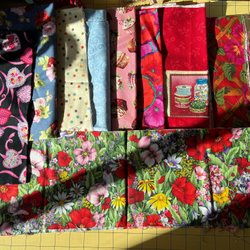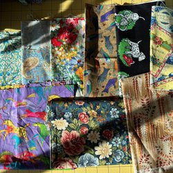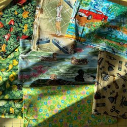Tygpaket med olika mönster. Mindre bitar lapptäckstyg.