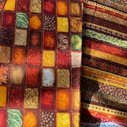 Tyg med kryddor på. Lapptäckstyg