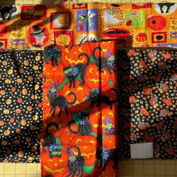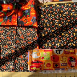 Halloween. A Tygpaket med olika mönster. Mindre bitar lapptäckstyg.
