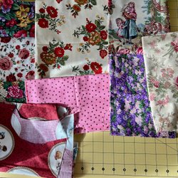 Rea. 5 st tygbitar, lapptäckstyg.