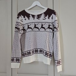 Vila vit/mörklila stickad jultröja, storlek M