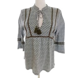 E Dam Tunikablus 44 Färgglad Bomull 100% 3/4 ärm Geometrisk Rund urringning