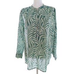M&S PER UNA Dam Blus med knappar 42 Blå Bomull 100% Lång ärm Växtblad Rund hals