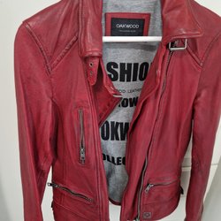 AllSaints rosa skinnjacka/bikerjacka 100% äkta läder, storlek S