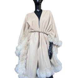 Brunbeige sofistikerad poncho ullblandning Italien vintage retro