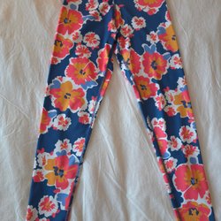 Tridri blåa, rosa, orangea, vita leggings, storlek S
