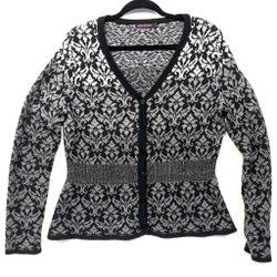 Indiska grå, svart mönstrad kofta, storlek L