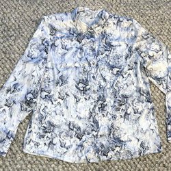Lindex, Mörkblå mönstrad skjortblus, stl 42