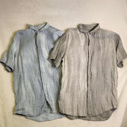 Två Kortärmade Linneskjortor Storlek 14 Skjortor Grå Blå