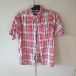 Kortärmad bomullsskjorta röd och vit skjorta m blå inslag, storlek M