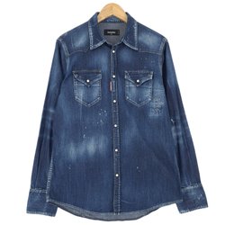Dsquared2 Vintage Herr Denim Skjorta Blå Knapp Upp Casual storlek 44