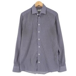 Boggi Milano Herr Formell Skjorta Rutig Bomull Smal Passform storlek 40 15 3/4