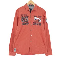 Camp David Vintage Herr Manchesterskjorta Röd Randig Bomullstorlek M