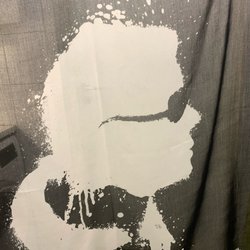 Vit, blå handduk