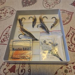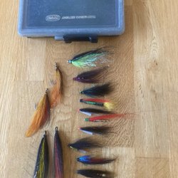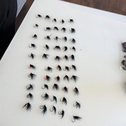 - Flugor i olika storlekar och färger för att attrahera olika typer av lax