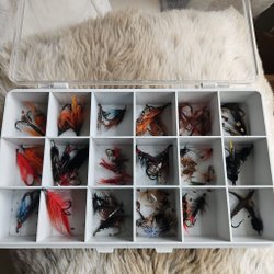 - Flugor i olika storlekar och färger för att attrahera olika typer av lax