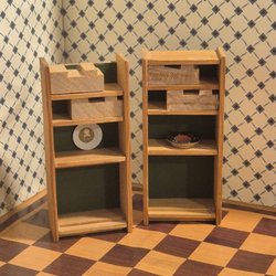 Lisa hyllor, saknas. Dockskåpsmöbler