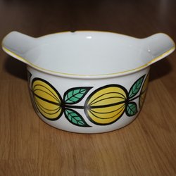 På Tradera finns många annonser som säljare ständigt lägger ut. Det går ofta att komma över Wilhelm Kåges populära serviser Tussilago, Pyro och Grå ränder. När serviserna kom ut första gången blev de snabbt en hit hos den svenska familjen. Tussilago är något mer dekorativ och detaljerad än de övriga två serviserna med sina gula tussilagor och snirkliga mönster. Med lite tur finns goda möjligheter att hitta annonser med kompletta serviser från Gustavsberg. Vissa säljare annonserar även ut enstaka fat, lock och andra delar från populära serviser.