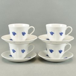 4 Kaffekoppar med fat - Blå Blom - Old Gustavsberg