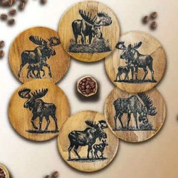 Glasunderlägg i Trä med Älgmotiv