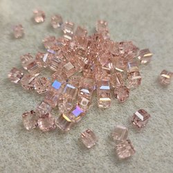 Superläckra rosa Kuber av Glas/Kristall i fantastiska färger 4*4 mm !!!