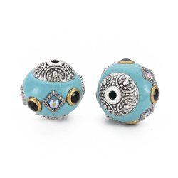 Handgjord pärla - turkos/antik silver - 15x15mm