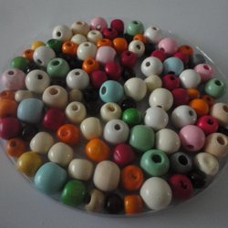 100 St Träpärlor runda i olika färger i storlekar