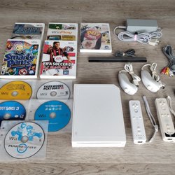Wii-konsol med tillbehör och spel