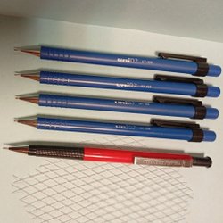 Pennor fyra stiftpennor uni 0,7 U7-105 och en penna uni 07 U7-203