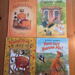 Bokpaket: Hattjakten, Tuppens minut, Mamma Mu bygger koja, Mera fart Mamma Mu!
